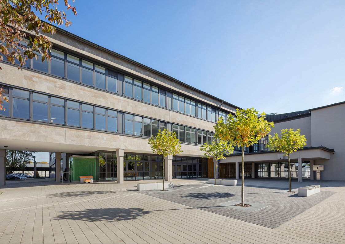 Die Schullehrküche mit vier Kochinseln wurde neu aufgebaut, die über einen Fettabscheider entwässert wird. Gebäudeautomation und Automation von Ingenieurbauwerken: Die Heizungsanlage und die Lüftungsanlagen werden zentral über eine Gebäudeleittechnik gesteuert. Störmeldungen aller Anlagen werden über die Gebäudeleittechnik gesammelt und angezeigt.