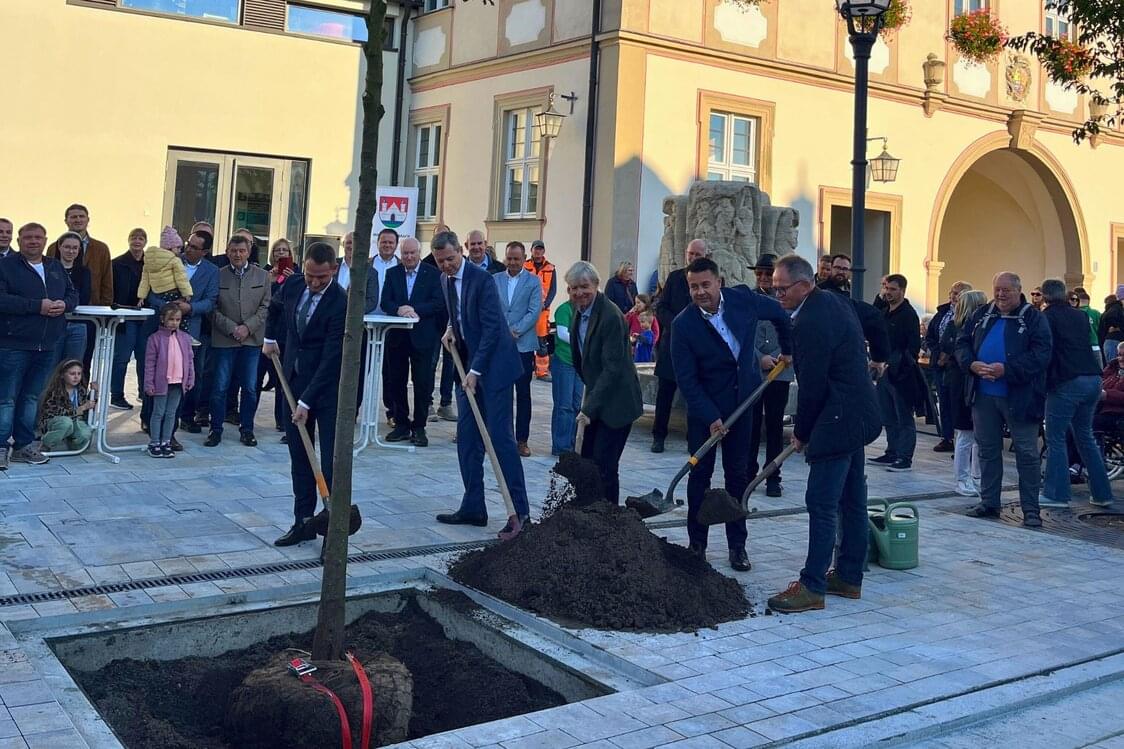 Auch das Umfeld des Rathauses wurde neugestaltet: Der Brunnen erhielt einen neuen Platz, der künftig für Empfänge nach Trauungen genutzt wird.