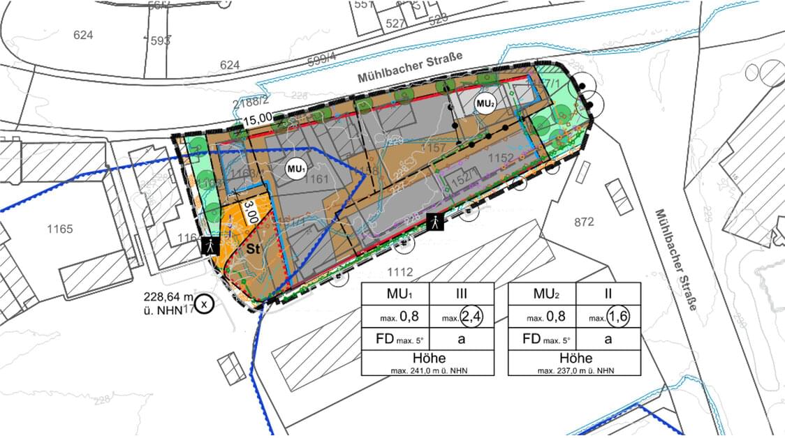 Um bei der künftigen Entwicklung des Areals eine größtmögliche Flexibilität in der Nutzungsmischung und damit auch eine an den Standort angepasste Entwicklung zu ermöglichen, soll durch die vorliegende Änderung des Bebauungsplanes eine Anpassung der Art der baulichen Nutzung von Mischgebiet (MI) zu einem Urbanen Gebiet (MU) erfolgen. Genau wie das Mischgebiet ermöglicht das Urbane Gebiet eine vielfältige Nutzungsmischung aus Wohnen, Versorgung, Bildung, Gewerbe und Kultur, die jedoch im Urbanen Gebiet nicht gleichwertig ausgeprägt sein muss. Gleichzeitig entspricht die Planung der Maßgabe der Innen- vor Außenentwicklung (Nachverdichtung im Innenbereich).