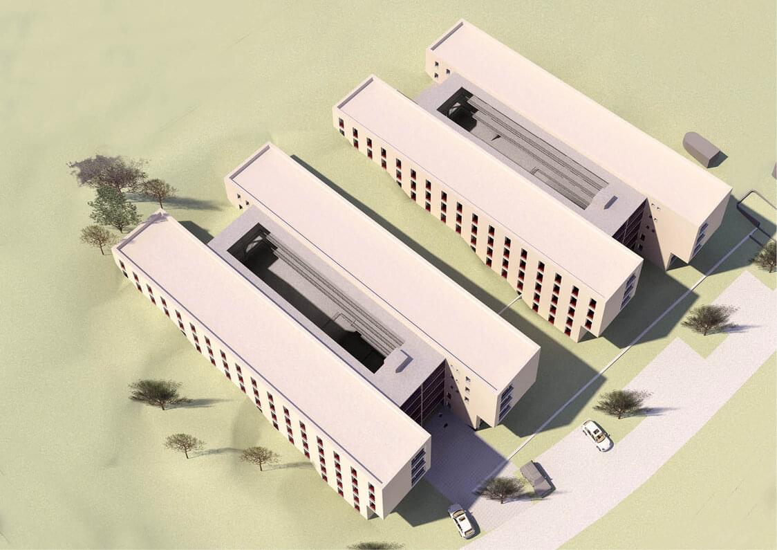 Die beiden Neubauten nach KFW 70 Standard bieten Platz für 230 Studenten und sollen der steigenden Wohnungsnot in Konstanz Einhalt gebieten. Die elektrotechnische Grundversorgung des Gebäudes erfolgt über eine eigene Trafostation oberhalb des Baufeldes. Von dort wurde eine Leitung in Leerrohren in das Erdgeschoss des Gebäudes 4a verlegt in dem die Niederspannungshauptverteilung für beide Gebäude ihren Platz findet. In jeder Spange (4 Spangen insgesamt) wurde ein Hauptverteiler zur Versorgung der jeweiligen Spange installiert. Ab hier wurde über Versorgungsschächte zu den einzelnen Unterverteilern (Wohnungsverteiler) gefahren. Mit dem Datennetz wurde ebenso verfahren, hier wurde von einer bestehenden Datenanlage auch oberhalb des Baufeldes über ein separates Leerrohr eine LWL-Leitung in das Erdgeschoss des Gebäudes 4a verlegt. In jeder Spange wurde ein separater Datenverteiler (insgesamt 4) aufgestellt. Vom jeweiligen Datenverteiler wird jede Doppeldatendose in den Wohnungen mit einem Duplex-Datenkabel einzeln angefahren. Auch eine Antennenanlage wurde für beide Gebäudekomplexe realisiert. Jedes Schlafzimmer in den Wohnungen hat eine eigene Antennendose.