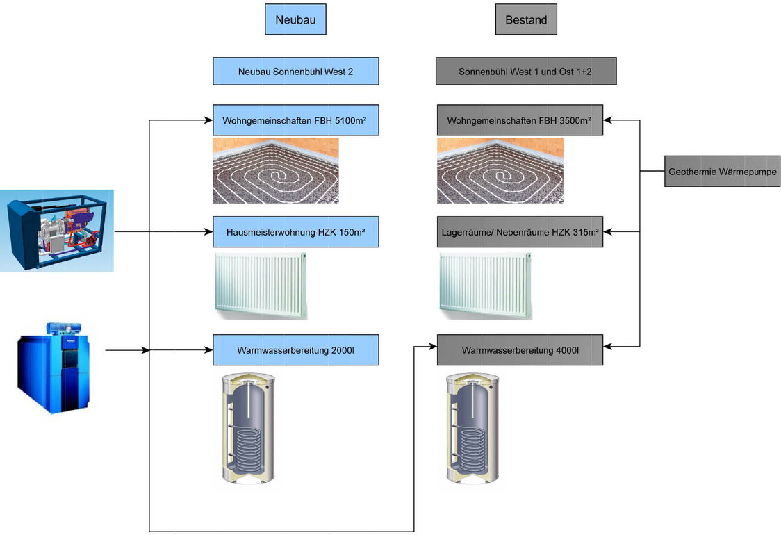 Das Seezeit Studentenwerk Bodensee AöR beabsichtigt den Neubau eines Studentenwohnheims mit 232 Bewohnerplätzen im Bereich Sonnenbühl nahe dem Uni-Campus als Ersatz für eine im Frühjahr 2010 abgerissene Wohnanlage. Das neue Studentenwohnheim gliedert sich in insgesamt 4 Gebäuderiegel, die sich terrassenartig abgetreppt in die Hangtopographie hineinschieben. Jeweils zwei dieser Gebäuderiegel werden gemeinsam über ein offenes Laubengangsystem erschlossen. Die Wohnbereiche sind in 3er und 4er Wohngemeinschaften mit jeweils eigenem Bad und Küchenbereich gegliedert, jedes einzelne Studentenzimmer wird mit geschosshohen Fenstern - mit farbiger Glasbrüstung - für ausreichend natürliche Belichtung und Belüftung ausgestattet. Für die Gebäudeausführung ist eine nachhaltige KfW 70 Bauweise inkl. Dachbegrünung festgelegt. Das energetische Konzept basiert auf einen Nahwärmeverbund mit der benachbarten Studentenwohnanlage Sonnenbühl West II. Dabei wird im Blockheizkraftwerk (Grundlast) im redundanten Verbund mit einer Gastherme (Spitzenlast) eingesetzt.