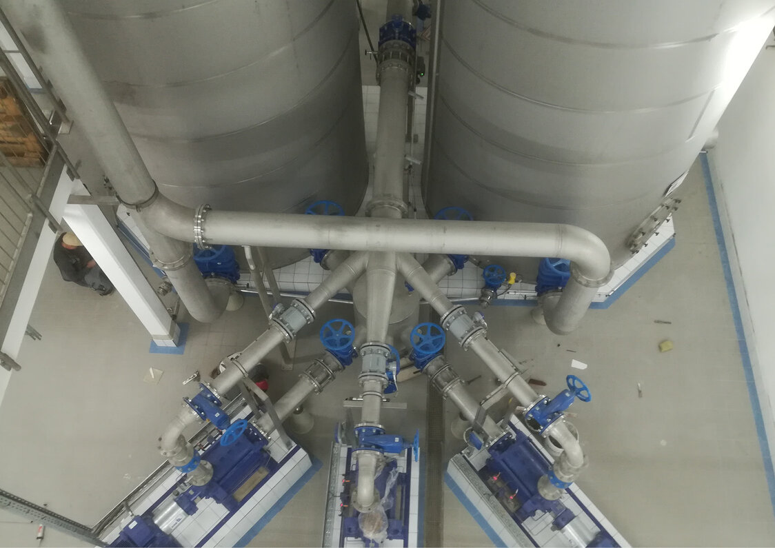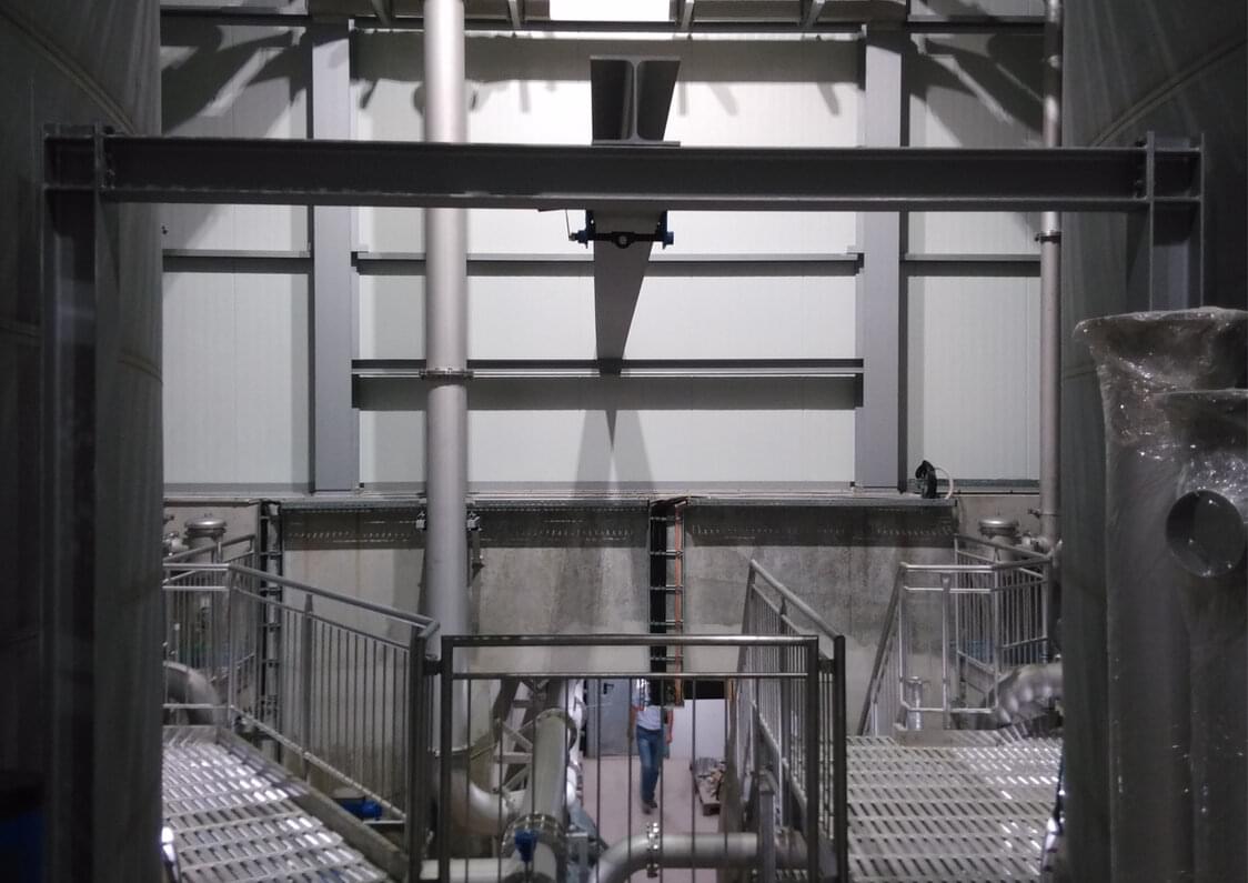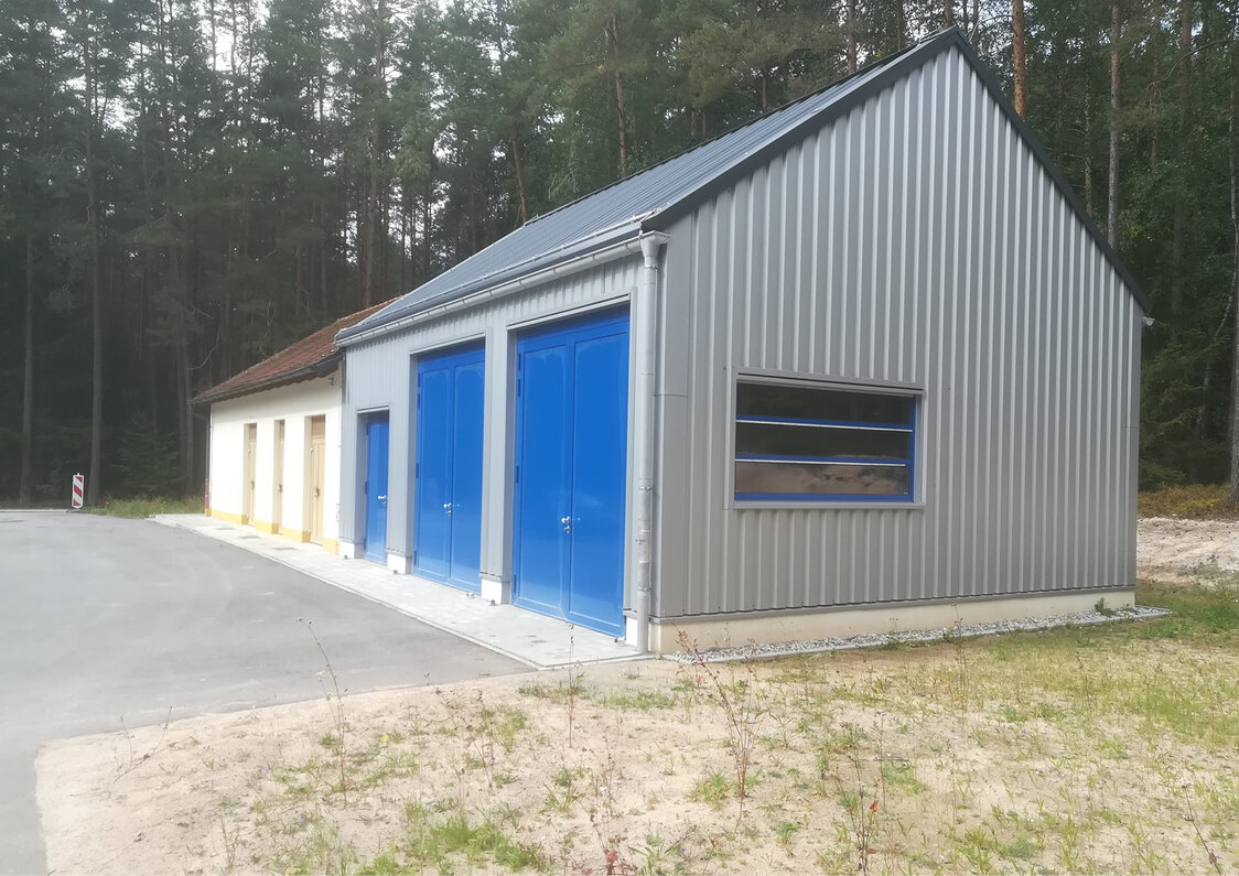 Zur Aufbereitung des geförderten Wassers aus dem Erschließungsgebiet IV der Reckenberg-Gruppe wurde ein Wasserwerk errichtet. Das Aufbereitungsgebäude (21,1 x 26,3 x 12,5 LxBxH) nimmt neben der Aufbereitungstechnik zwei Reinwasserbehälter aus Edelstahl mit je 60 m³ und die Hauptförderstufe (60 l/s, 90 m) auf. Das Untergeschoss ist in monolithischer Bauweise in Stahlbeton errichtet. Die Filterhalle wurde als Stahlrahmenkonstruktion mit außenliegenden wärmegedämmten Kassettenelementen ausgeführt. Innerhalb der Filterhalle befindet sich die Aufbereitungstechnik. Der Durchsatz der Anlage beträgt bis zu 60 l/s. Die Planung der Aufbereitungstechnik wurde von einem Fachbüro übernommen und in die Objektplanung integriert. Neben dem Wasserwerk wurde das bestehende Trafohaus umgebaut und um eine Unterstellhalle für drei Notstromaggregate mit Treibstofftank ergänzt. Die Unterstellehalle (9,1 x 7,1 x 6,3 LxBxH) wurde als Stahlrahmenkonstruktion mit außenliegenden wärmegedämmten Kassettenelementen ausgeführt.