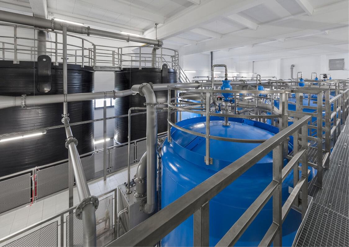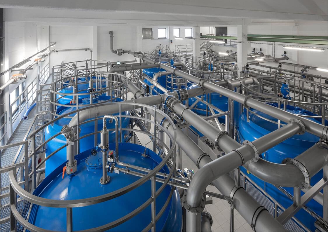 Die Trinkwasserversorgung des südlichen Bereiches des Versorgungsgebietes der Rhön-Maintal-Gruppe stützt sich auf die Gewinnungsanlagen am Main nahe Weyer. Zur Steigerung der Ergiebigkeit der drei Brunnengalerien und zur Minderung der Härte wurde Mainwasser aus der Forster Bucht über Sickerbecken und den „Großen See“ südwestlich der Brunnen versickert. Das gewonnene Rohwasser wurde im Wasserwerk Weyer (Aufbereitungskapazität derzeit max. 180 l/s = 648 m³/h) zu Trinkwasser aufbereitet und dann in die Versorgungsrichtungen Hochbehälter Gochsheim, Hochbehälter Euerheim und Hochbehälter Kreuzberg (Schonungen) verteilt. Um die Gewinnung weitestgehend unabhängig von der Qualität des Mainwassers zu machen, wird nun auf die Grundwasseranreicherung mit Mainwasser verzichtet. Die Aufhärtung des gewinnbaren Rohwassers erfordert eine zentrale Enthärtung des Wassers. Folgende Aufbereitungsschritte (Durchsatz 90 l/s = 324 m³/h) sind erforderlich und bedingen den Umbau bzw. Sanierung des Wasserwerkes: Druckbelüftung, Enteisenung / Entmanganung, Aktivkohle, Nanofiltration, Entsäuerung, Desinfektion. Die neue Aufbereitungsanlage ist problemlos bis zu einer Durchsatzleistung von 120 l/s (432 m³/h) erweiterbar. Im Wasserwerk wird weiterhin das Raumkonzept überarbeitet und die Fassade komplett erneuert. Der Neubau eines größeren Absetzbeckens, sowie neue Zu- und Ableitungen waren ebenfalls erforderlich. Der Umbau erfolgte bei laufendem Betrieb.